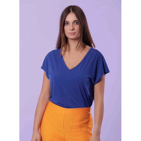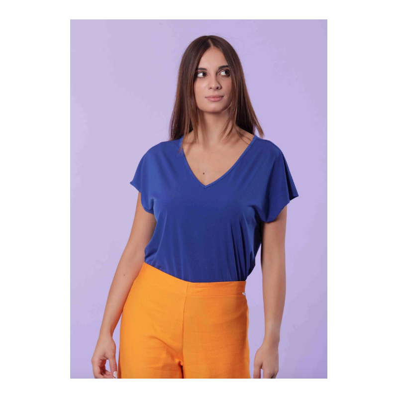 BLUSA SCOLLO V TINTA UNITA, STILE MINIMAL