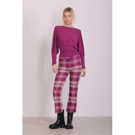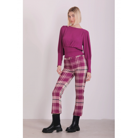 PANTALONE CROPPED FLARE FANTASIA CHECK, STILE CASUAL