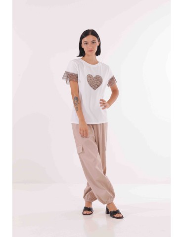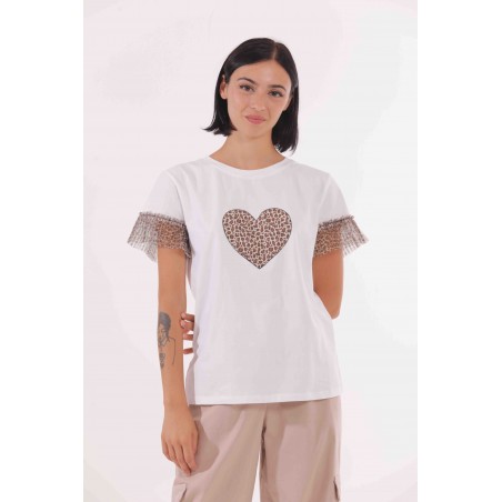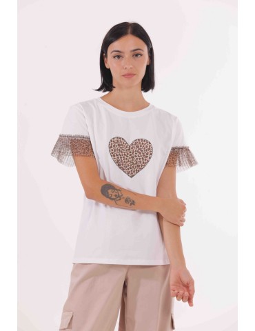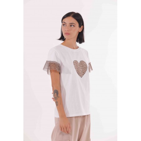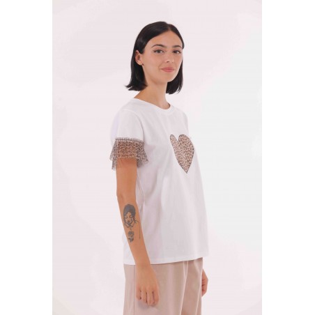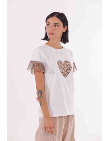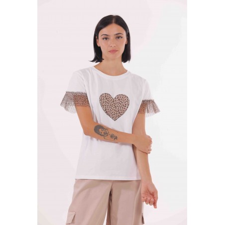 TSHIRT BIANCA CUORE LEOPARD MIMI MUA