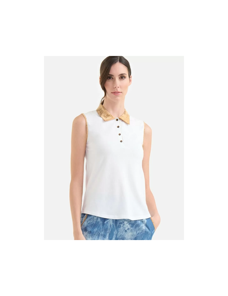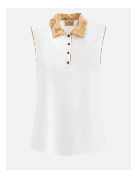 Polo smanicata in jersey piquet Gesso
