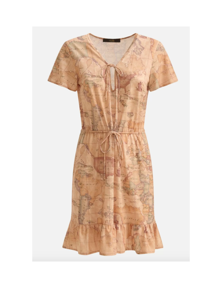 Il morbido jersey con stampa Geo Classic definisce questo abito corto, regalandogli la personalità unica del brand. I laccetti sullo scollo profondo e sulla coulisse creano un'estetica rilassata e bohémien, perfetta per look vacanzieri originali e versatili.