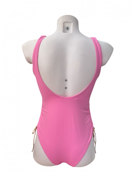 l costume intero si caratterizza per la coulisse sui fianchi, che permette di giocare sulla sgambatura e aggiunge un tocco grazioso al design minimal, nella tonalità Rosa Acceso, per un look da spiaggia deciso e accattivante.