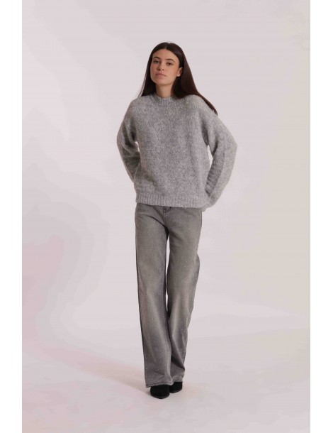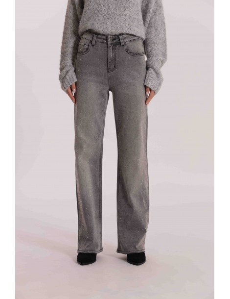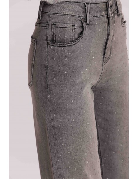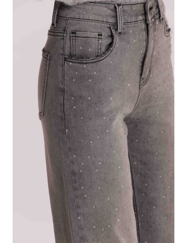 JEANS WIDE LEG CON STRASS TRASPARENTI
