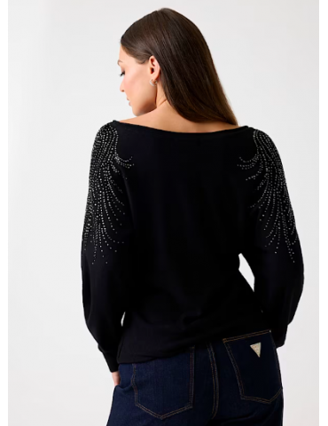 Maglione scollo a barca strass