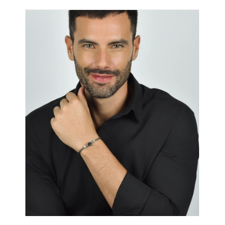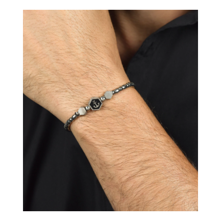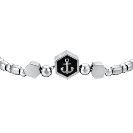 BRACCIALE UOMO IN ACCIAIO ELEMENTO CON ANCORA SILVER E SMALTO NERO