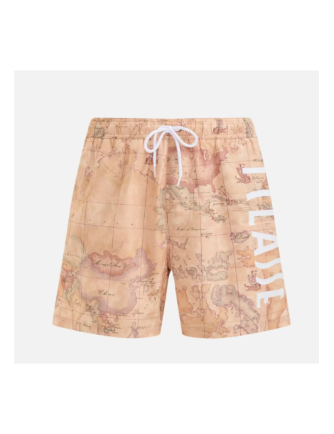 Boxer mare dal taglio corto, completati dalla vita con coulisse regolabile e due tasche laterali. Resi distintivi dall'inconfondibile stampa Geo Classic, esibiscono sul lato il logo 1ᴬ Classe stampato a contrasto.