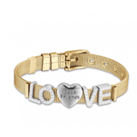 Rendere felice una donna è possibile regalandole il bracciale in acciaio Ip Gold maglia milano Luca Barra la cui catena in maglia presenta un design originale e interessante, dato dalla chiusura che ricorda quella di un orologio. Il bracciale dorato può essere indossato per conferire al polso un aspetto luminoso e glamour, oppure impreziosito con charm che ricalcano il carattere della donna che lo indossa.
