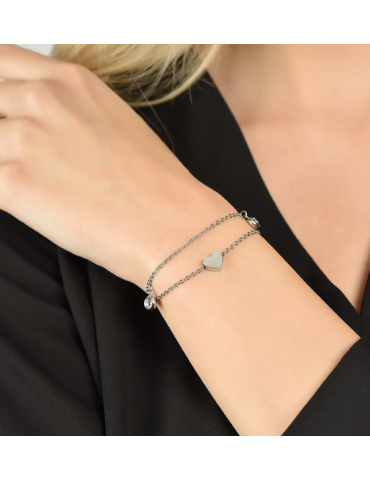 BRACCIALE DONNA IN ACCIAIO CON CUORE E CRISTALLO BIANCO