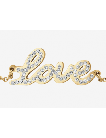 BRACCIALE DONNA IN ACCIAIO IP GOLD CON SCRITTA LOVE CON CRISTALLI BIANCHI