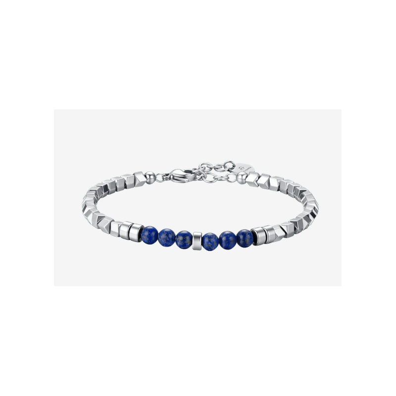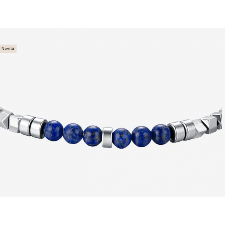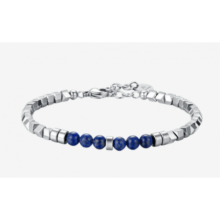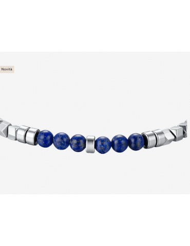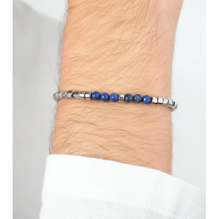 BRACCIALE UOMO IN ACCIAIO CON EMATITE SILVER E PIETRE BLU