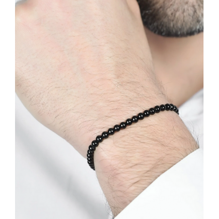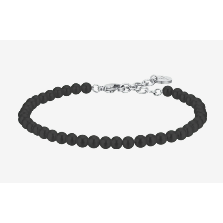 BRACCIALE UOMO IN ACCIAIO CON PERLE NERE