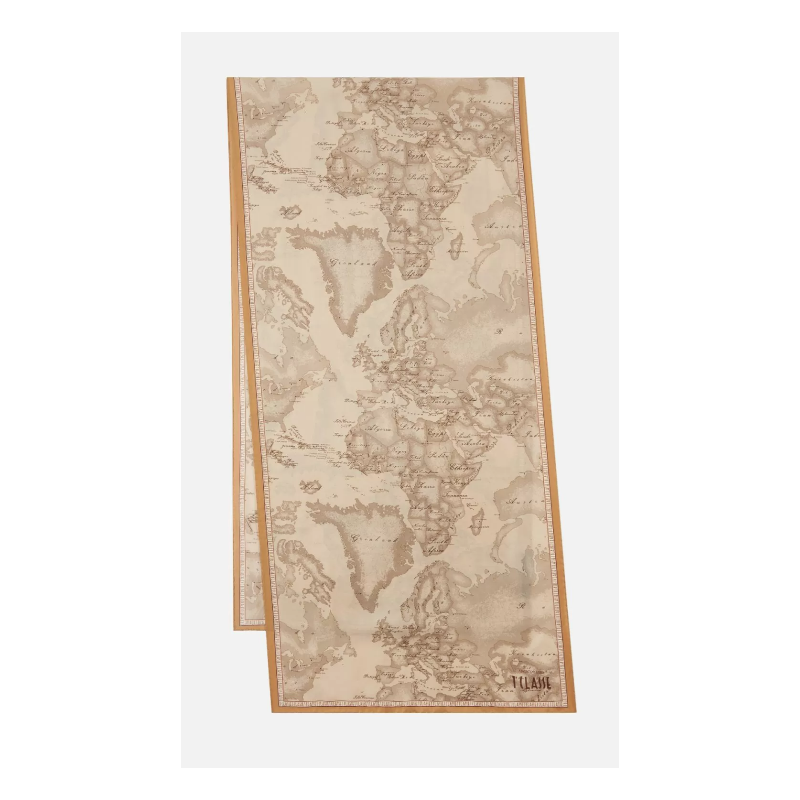 Sciarpa realizzata in morbida seta nei toni caldi del sabbia. L'iconica stampa Geo Safari all-over impreziosisce il design rendendolo iconico.
