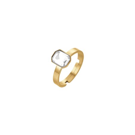 Anello in acciaio IP gold con cristallo bianco Misura regolabile