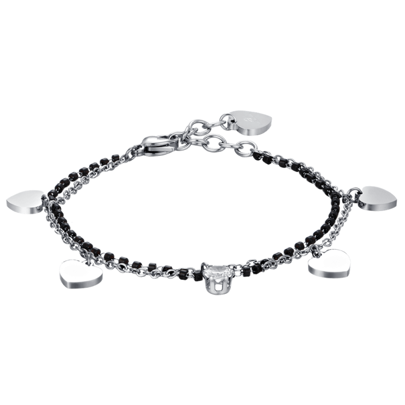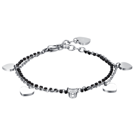 CAVIGLIERA DONNA IN ACCIAIO CON ELEMENTI NERI E CUORI