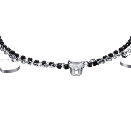 Cavigliera donna in acciaio con elementi neri e cuori