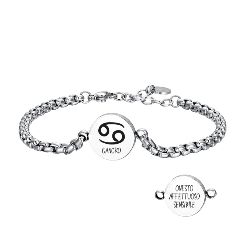 BRACCIALE UOMO IN ACCIAIO SEGNO ZODIACALE CANCRO PIASTRA