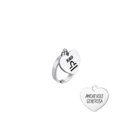 ANELLO DONNA IN ACCIAIO SEGNO ZODIACALE BILANCIA CON CUORE