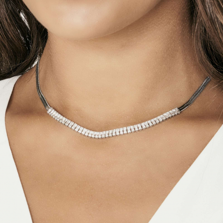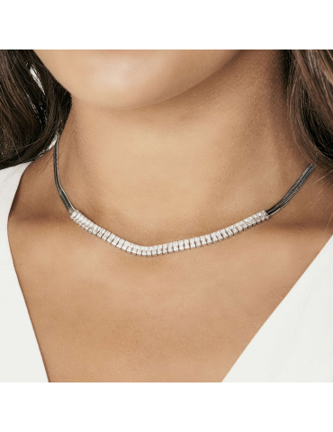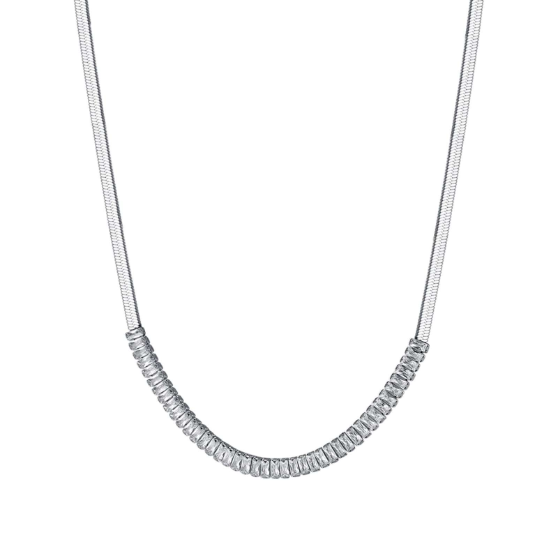 Collana da donna di Luca Barra. Collana in acciaio con cristalli bianchi. Lunghezza: 38 + 5 cm. La referenza è CK1732
