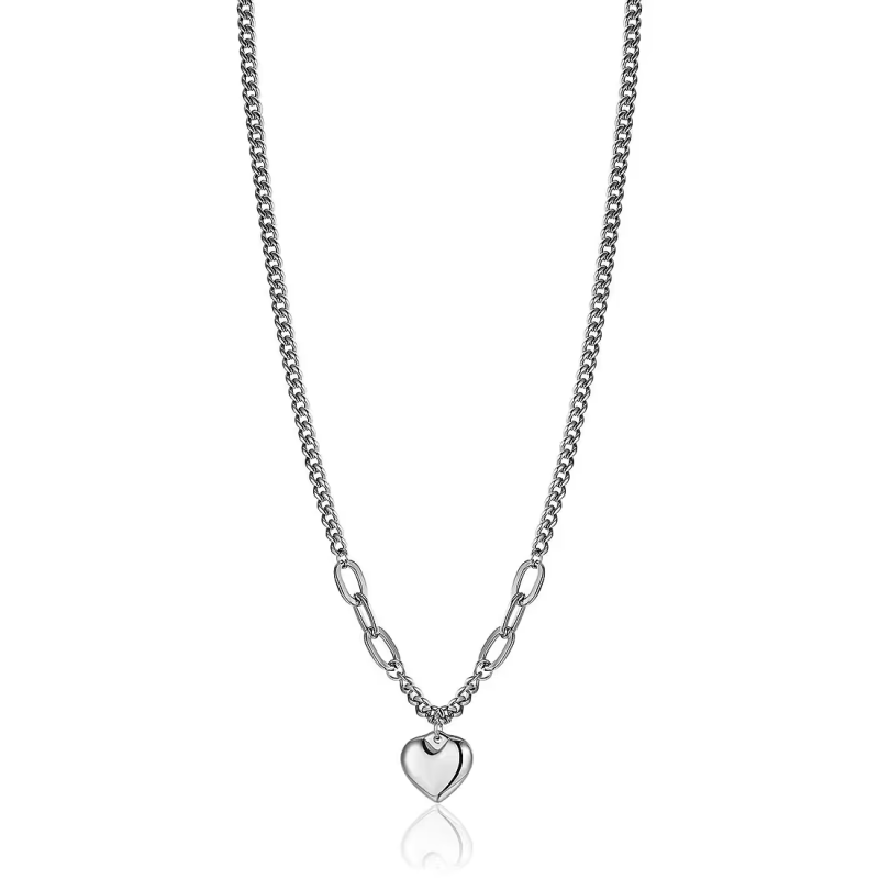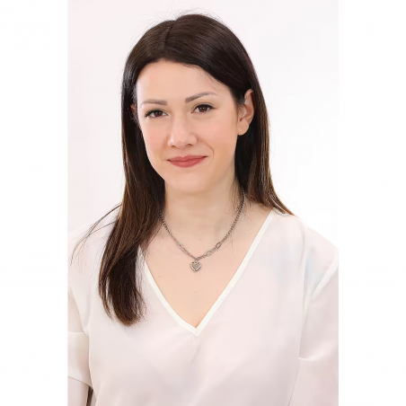 Collana da donna di Luca Barra della collezione spring. Collana in acciaio con cuore. Lunghezza: 40 + 5 cm. Diametro cuore: 15 mm.