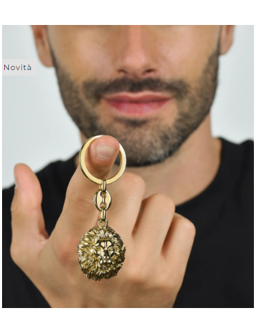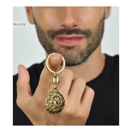 PORTACHIAVI UOMO IN ACCIAIO IP GOLD TESTA DI LEONE