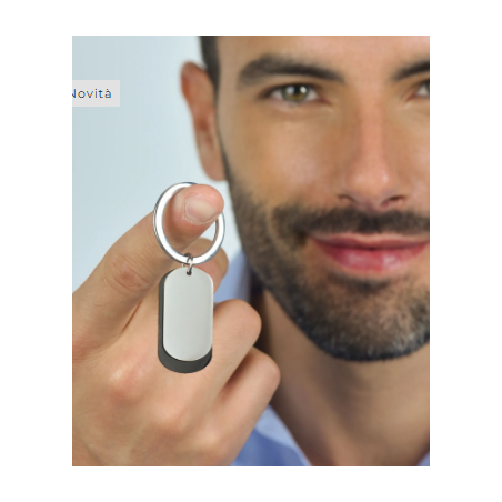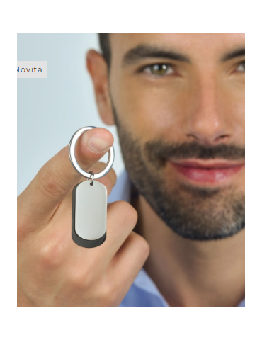 PORTACHIAVE UOMO IN ACCIAIO CON PIASTRE SILVER ED IP NERO