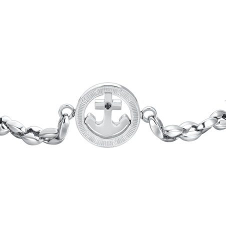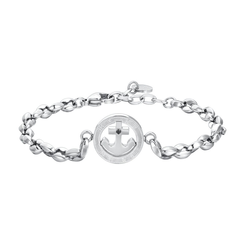 BRACCIALE UOMO IN ACCIAIO ANCORA E CRISTALLO NERO