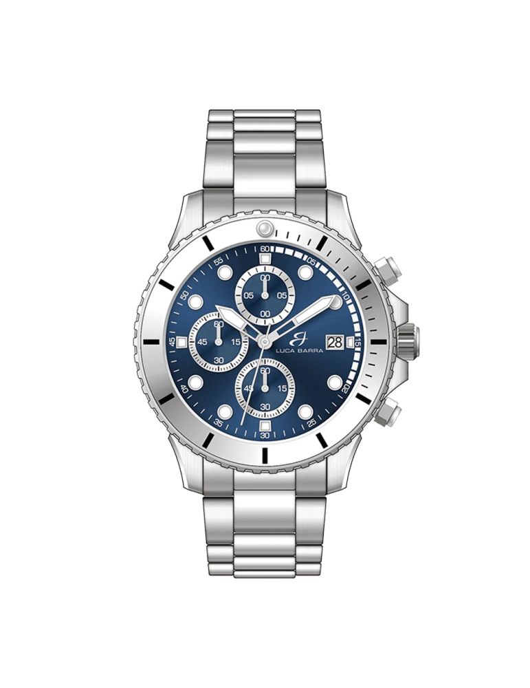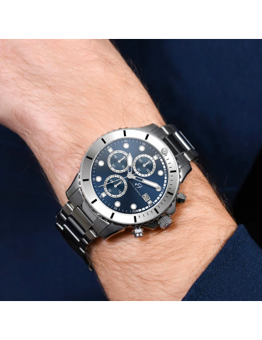 Orologio Uomo in acciaio con quadrante blu. Diametro cassa: 42,5 mm. Movimento Seiko VD57, 5 ATM. Cronografo. Lasciati affascinare dall'eleganza senza tempo dell'Orologio da Uomo in Acciaio con Quadrante Blu. Con un diametro della cassa di 42,5 mm, questo orologio incarna lo stile e la raffinatezza in un'unica creazione raffinata. Il quadrante blu, profondo e accattivante, cattura lo sguardo con la sua bellezza intramontabile, mentre l'acciaio dell'orologio conferisce robustezza e durabilità. La combinazione di colori e materiali crea un'armonia visiva che si adatta perfettamente a qualsiasi occasione. Dotato del movimento Seiko VD57, noto per la sua precisione e affidabilità, questo orologio offre non solo un design elegante, ma anche funzionalità di alto livello. Con una resistenza all'acqua fino a 5 atmosfere (ATM), è pronto ad affrontare le sfide della tua giornata con stile e affidabilità.