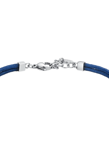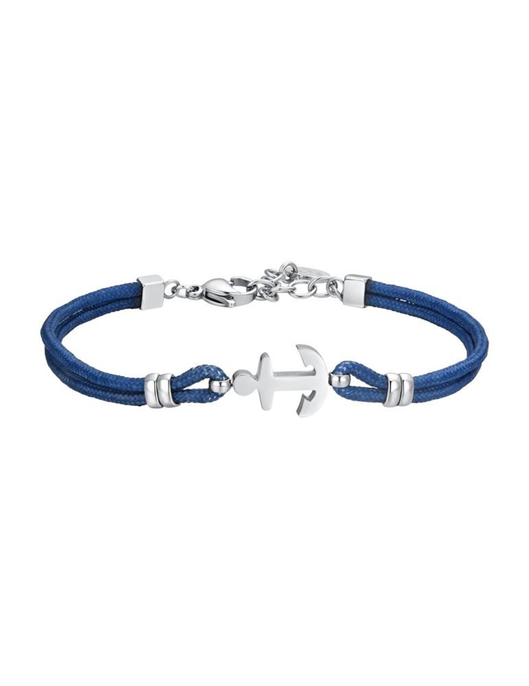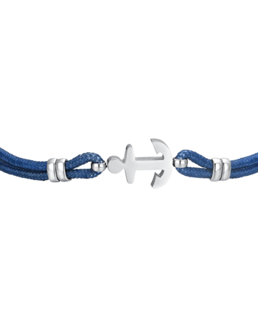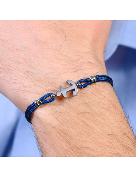 Bracciale Uomo in corda blu e ancora in acciaio. Lunghezza: 19 + 3 cm. Spessore corda: 2 mm. Misura elemento: 10 x 14 mm. L'ancora è simbolo di stabilità e sicurezza, poiché rappresenta la capacità di rimanere saldi anche nelle tempeste della vita. Il bracciale simboleggia la forza interiore e la capacità di affrontare le difficoltà con risolutezza. Il colore blu è spesso associato alla serenità e alla calma, soprattutto quando si tratta di temi legati al mare e al cielo. Indossare il bracciale con corda blu simboleggia il desiderio di mantenere la calma anche nelle situazioni più turbolente.
