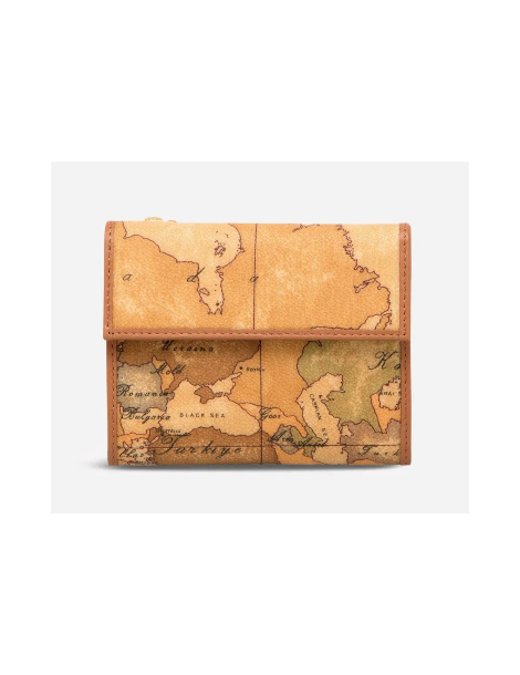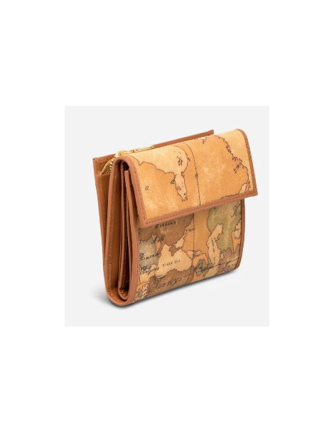 Portafogli donna in tessuto stampato con cartina geografica Geo Classic con tasca portamonete esterna chiusa con zip, diversi scomparti interni per banconote, carte di credito e ricevute, chiusura con bottone a pressione. Piccolo e compatto, ti stupirà per la sua capienza e l'estrema praticità,