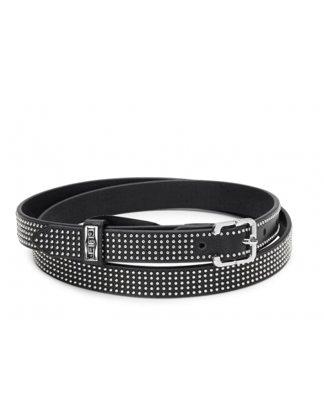 Nuova cintura con micro borchie color argento nata per infondere un tocco moderno e rock ai look di tutti i giorni. Realizzata in misto pelle, ha una fibbia qudrata per una finitura classica. Lascia che risalti sugli spezzati neri. Spessore 2cm