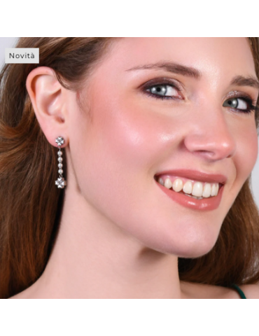 ORECCHINI DONNA CON QUADRIFOGLIO IN ACCIAIO E PERLE BIANCHE