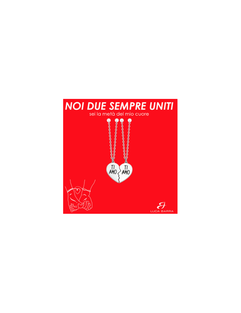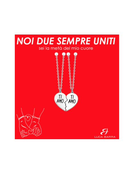 Collana Coppia in acciaio Ti Amo. Lunghezza 40+5cm. Misura cuore intero 19x16 mm. Spessore cuore 2 mm. Il design pulito ed elegante rende questa collana adatta per l'uso quotidiano, mentre il significato profondo la rende perfetta per celebrare momenti speciali. Indossatela come coppia per dichiarare il vostro amore in modo unico e personale