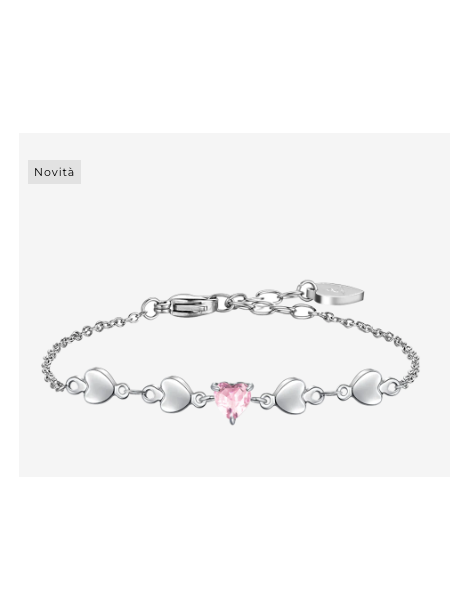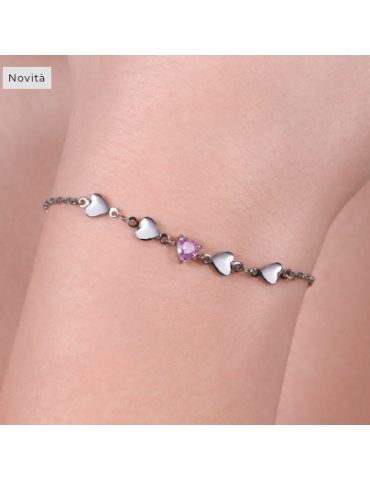 BRACCIALE DONNA IN ACCIAIO CON CUORI E ZIRCONE ROSA