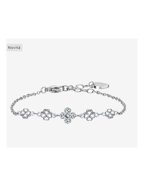 BRACCIALE IN ACCIAO CON QUADRIFOGLI E ZIRCONI BIANCHI