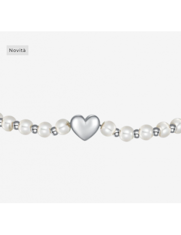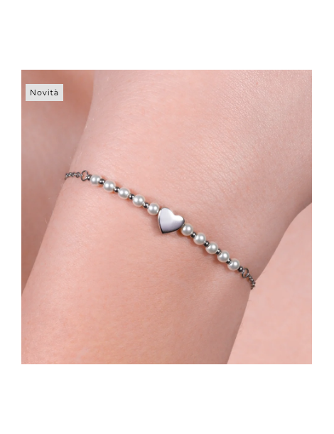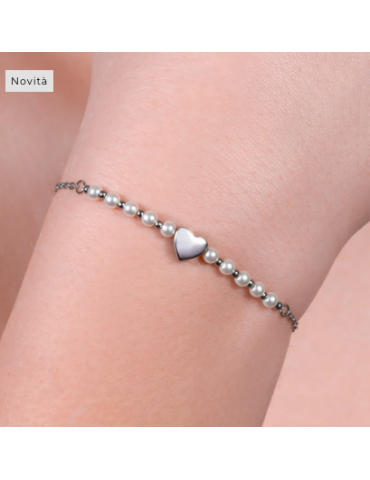 BRACCIALE DONNA IN ACCIAIO E PERLE BIANCHE CON CUORE