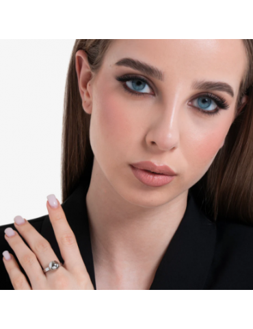 ANELLO DONNA CON SFERA LUCIDA IN ACCIAIO ED ACCIAIO IP GOLD