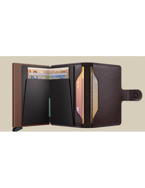 Piccolo nelle dimensioni ma sorprendentemente capiente: il Miniwallet soddisfa tutte le esigenze. Il rivestimento esterno può contenere banconote, scontrini e tessere, mentre il Cardprotector in alluminio consente di estrarre le carte con un semplice movimento, impedendo che si pieghino, si spezzino o che vengano lette senza che ce ne accorgiamo.