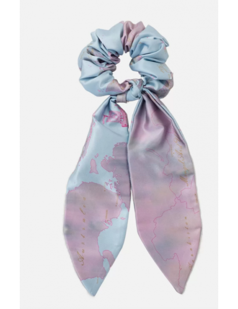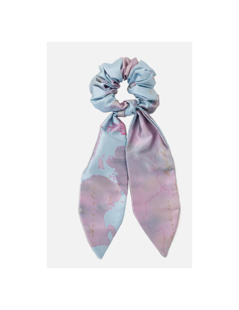 Elastico per capelli con code in raso stampa Geo Vintage Azzurro Cielo
