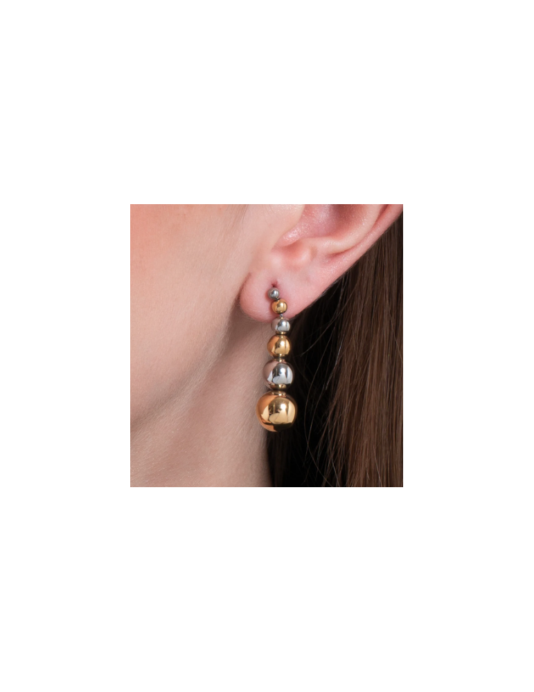 ORECCHINI DONNA CON SFERE IN ACCIAIO IN ACCIAIO E IP GOLD