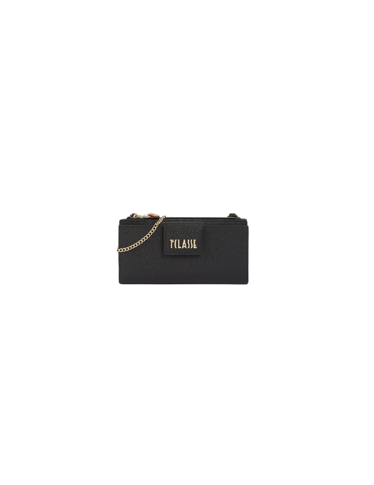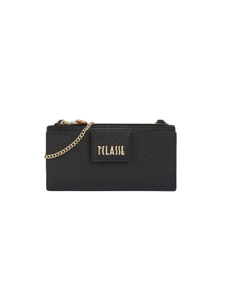 La pochette portacellulare Digital City in tessuto saffiano interpreta con stile e praticità i bisogni di una società sempre connessa: la tasca chiusa con patta logata è perfetta per accogliere lo smartphone, mentre quella chiusa con zip funge da portamonete. La chiusura con doppio bottone a pressione rivela l'interno suddiviso in numerose tasche. Completano il profilo la tracolla in catena e la polsiera in nappa stampa Geo Classic, entrambe rimovibili per consentire una doppia portabilità: un accessorio del nostro tempo ormai parte di ogni look, ideale per esprimere il proprio stile senza rinunciare alla funzionalità.