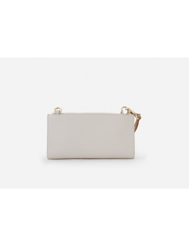 La pochette portacellulare Digital City in tessuto saffiano interpreta con stile e praticità i bisogni di una società sempre connessa: la tasca chiusa con patta logata è perfetta per accogliere lo smartphone, mentre quella chiusa con zip funge da portamonete. La chiusura con doppio bottone a pressione rivela l'interno suddiviso in numerose tasche. Completano il profilo la tracolla in catena e la polsiera in nappa stampa Geo Classic, entrambe rimovibili per consentire una doppia portabilità: un accessorio del nostro tempo ormai parte di ogni look, ideale per esprimere il proprio stile senza rinunciare alla funzionalità.
