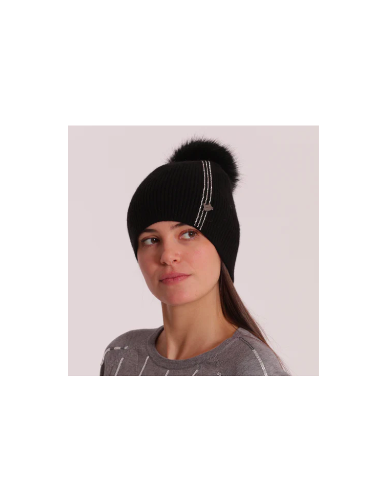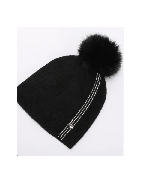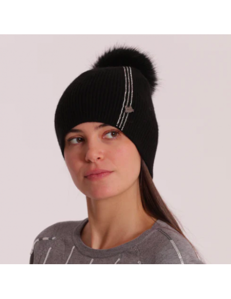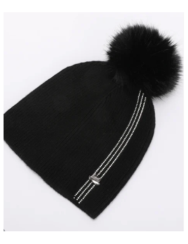 BERRETTO CON 3 STRISCE DI STRASS E PON PON