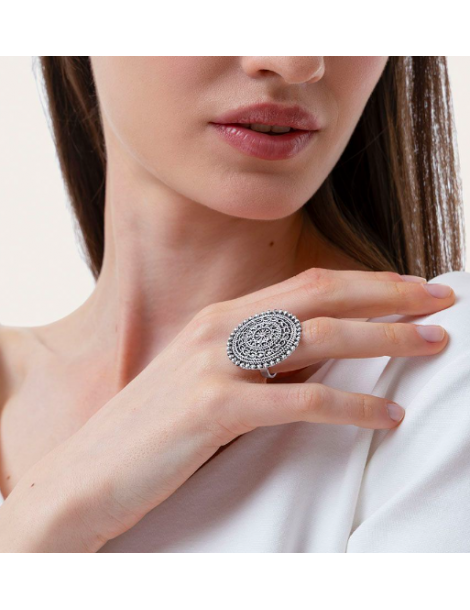Scopri il fascino artigianale e ricerco di questo anello in stile boho. La placca tonda decorata rende questo gioiello iconico, perfetto per chi ama i dettagli unici e simbolici. Ideale da indossare su look etno-chic. Modello regolabile. Placcatura argento 100% artigianale. Nickel tested. Lavorazione artigianale. Gioielli fatti a mano, unici e artigianali, perfetti per tutti i tuoi look o come idea regalo.
