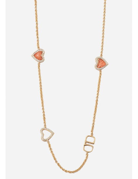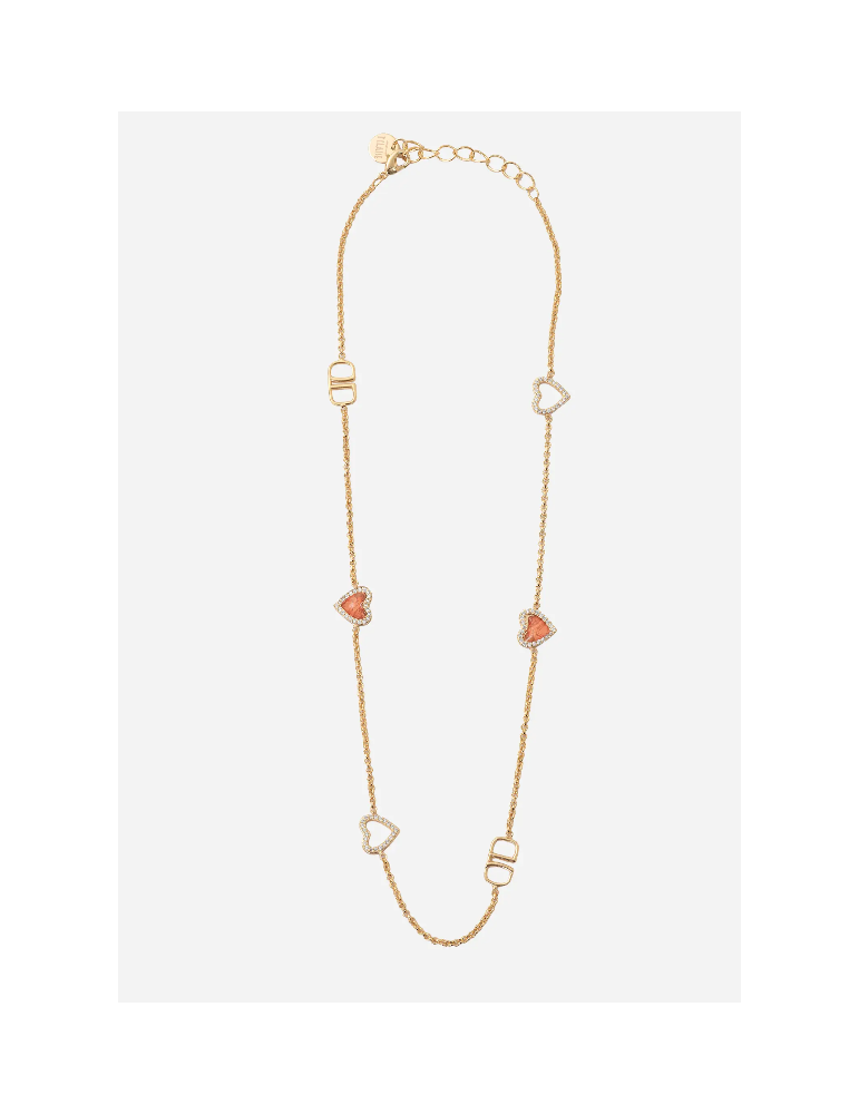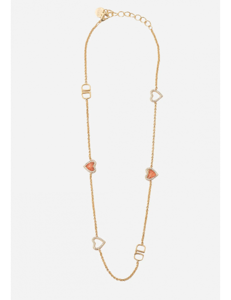 Una delicata collana con finitura oro chiaro, impreziosita da loghi 1C alternati a cuoricini ornati di zirconi e con dettagli in stampa Geo Classic. Ideale da indossare con il braccialetto abbinato per donare un tocco romantico ai tuoi look delle feste.
