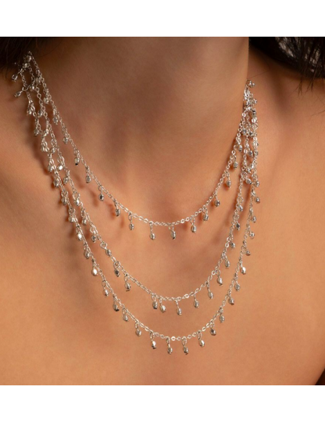 Collana placcata in argento 3 fili mini elementi. Chiusura regolabile con moschettone. Lunghezza collana 49 cm. Extra chain 6,5 cm. Placcatura 100% artigianale. Nickel tested. Lavorazione artigianale. Gioielli fatti a mano, unici e artigianali, perfetti per tutti i tuoi look o come idea regalo.