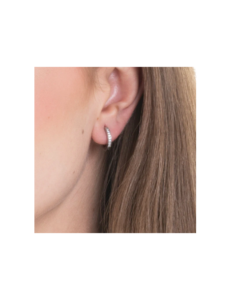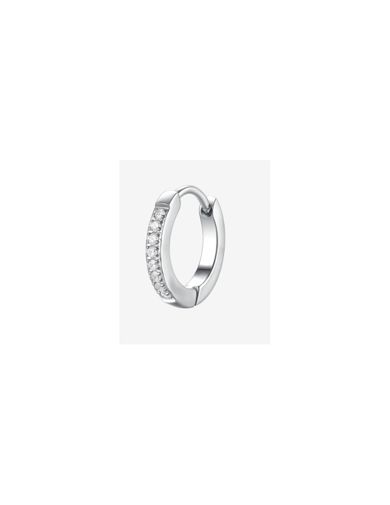 MONO ORECCHINI DONNA A CERCHIO IN ACCIAIO CON ZIRCONI BIANCHI