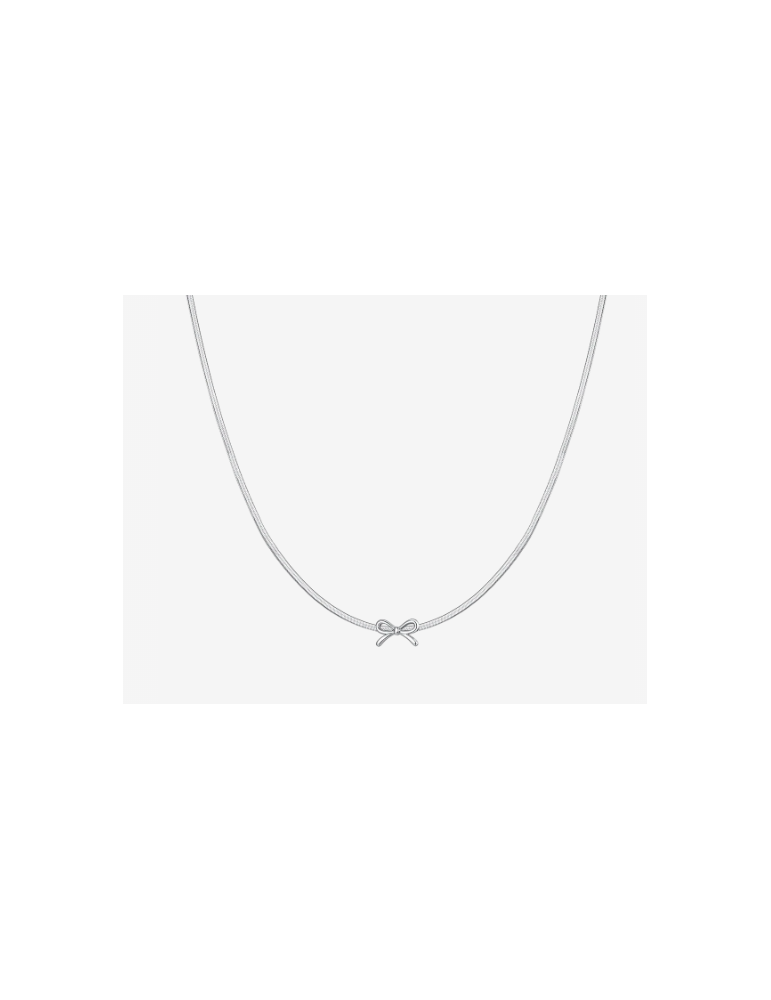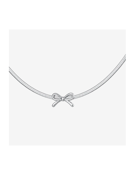 Collana Donna in acciaio con fiocco. Lunghezza: 40 + 5 cm. Misura fiocco: 12 x 7,5 mm. Larghezza maglia: 2 mm.