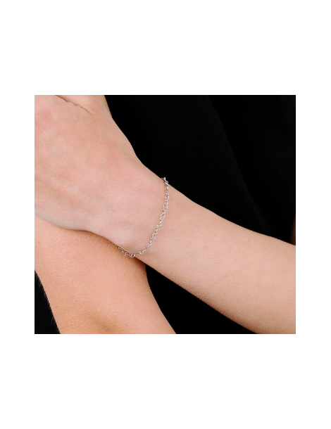 Bracciale in acciaio Lunghezza: 17 + 3 cm Il bracciale in acciaio con linea semplice e design minimal è un gioiello da indossare per darsi un po' di tono. Un accessorio molto elegante che si adegua a qualsiasi look in maniera molto semplice e delicata. La catena realizzata con cerchi di dimensioni ridotte rende l'accessorio perfetto per ogni stile, idea regalo impeccabile per dimostrare a qualcuno che è al centro dei propri pensieri. Perfetta per dare stile ed eleganza al proprio look.