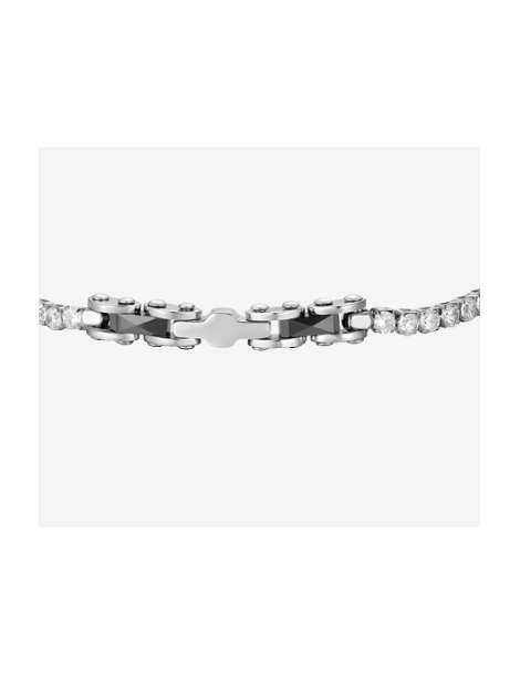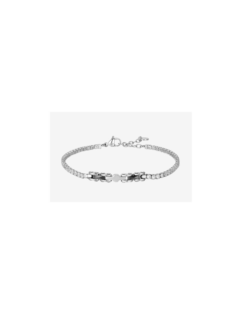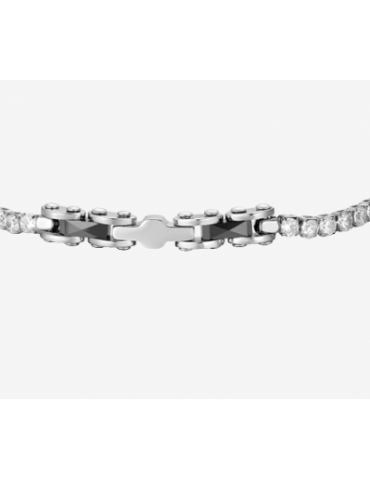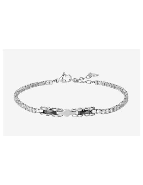 BRACCIALE TENNIS UOMO IN ACCIAIO CON CERAMICA NERA E ZIRCONI BIANCHI