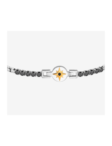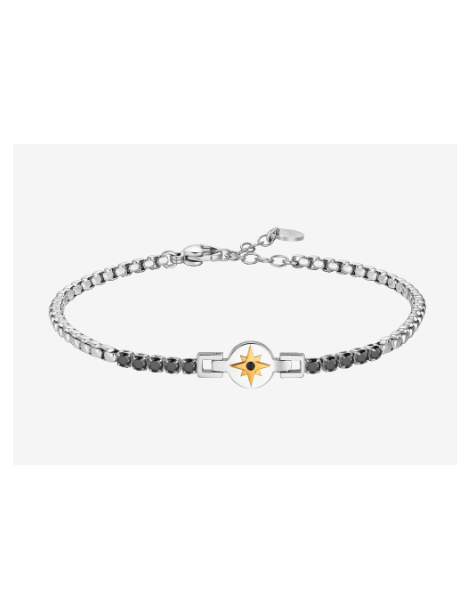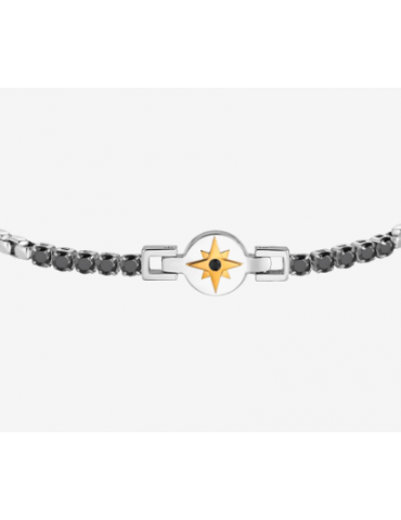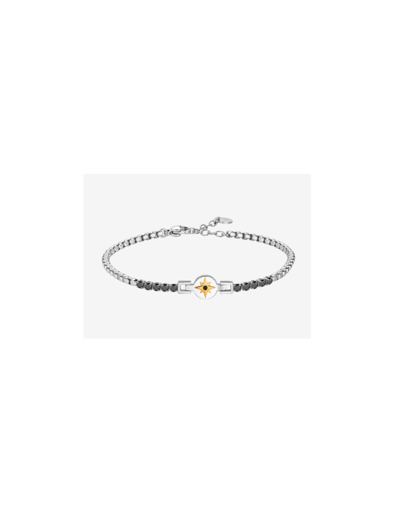 Bracciale tennis uomo in acciaio con rosa dei venti IP rose e zirconi neri Lunghezza: 19 + 3 cm Misura rosa dei venti: 13 x 8 mm